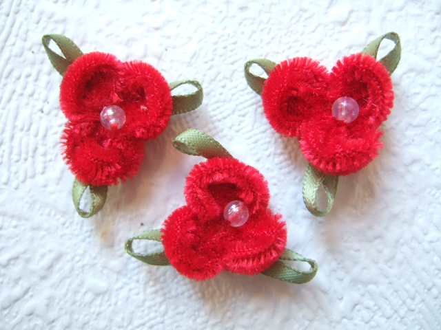 Doorsnee roosje ongeveer 2 cm, met blad 3 cm.