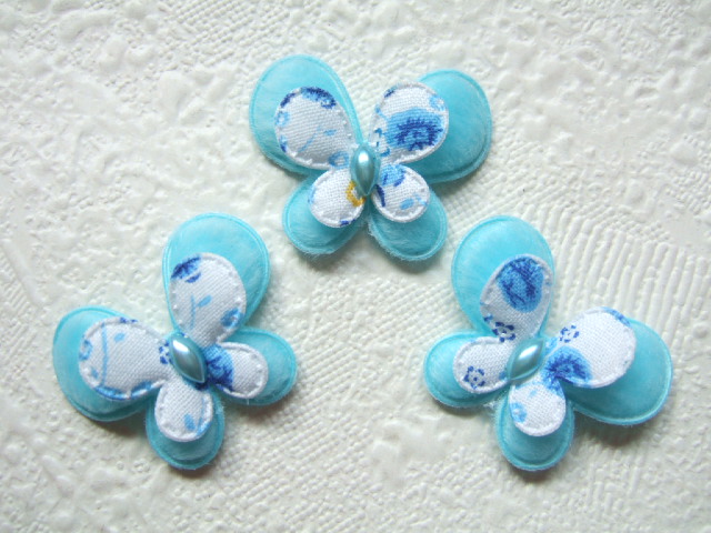 Schattige blauw gevulde mini vlindertjes, met dubbele vleugels en een “parel” lijfje.