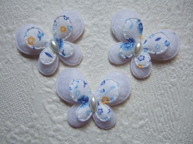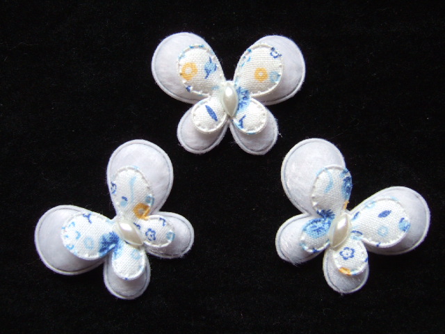 Schattige wit met blauw gevulde mini vlindertjes, met dubbele vleugels en een “parel” lijfje.