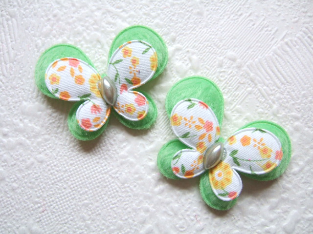 Schattige groene gevulde vlindertjes met dubbele vleugels en een “parel” lijfje.