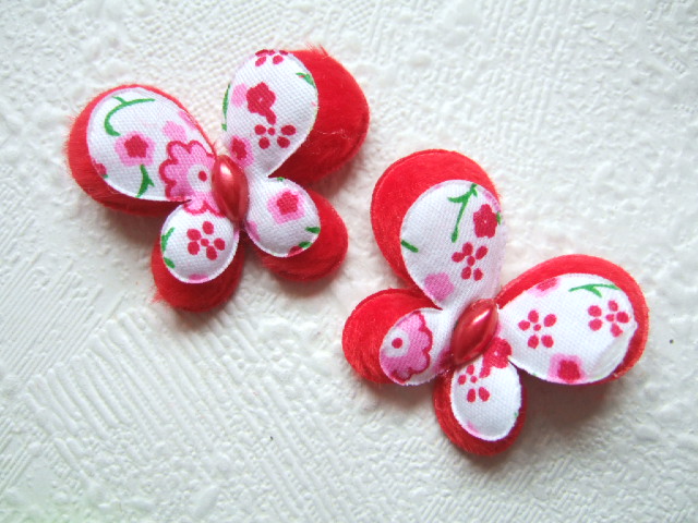 Schattige rode gevulde vlindertjes met dubbele vleugels en een “parel” lijfje.