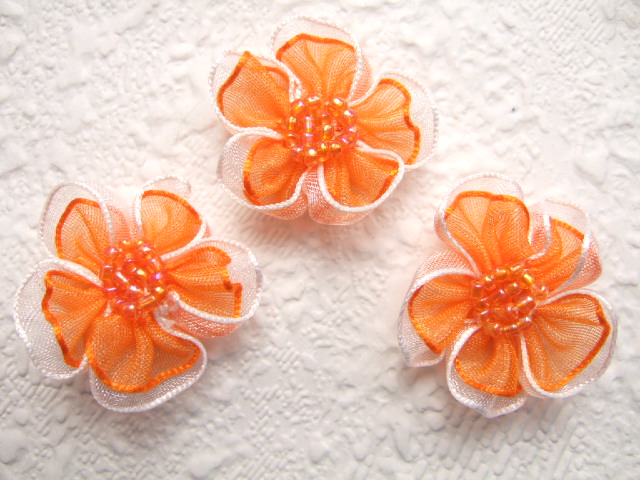 Prachtige organza bloemen met kraaltjes in het hart.
