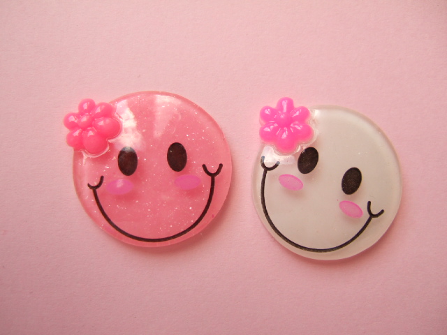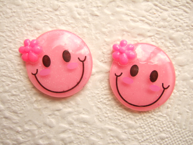 Ronde smile flatbacks met een hard roze bloemetje.