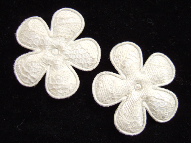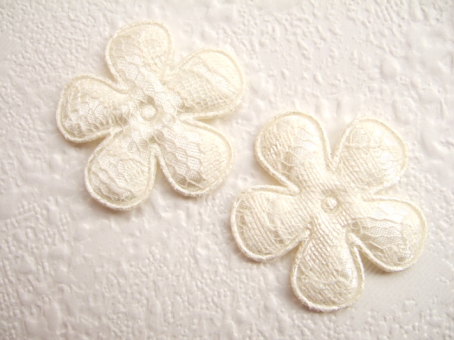 Prachtige bloemen van crème satijn met fijn ivoor kant.