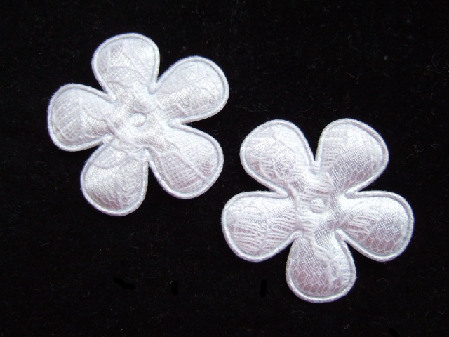 Prachtige bloemen van wit satijn met fijn wit kant.