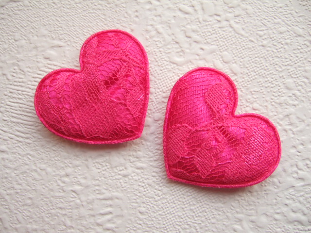 Prachtige hartjes van fuchsia roze satijn met fijn fuchsia kant.