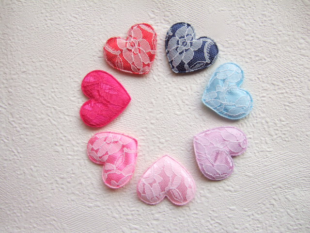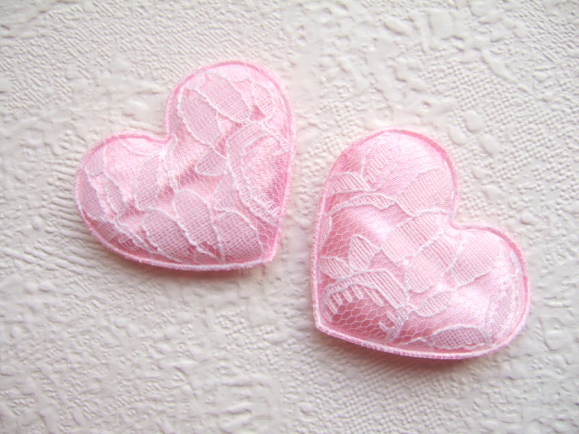 Prachtige hartjes van licht roze satijn met fijn wit kant.
