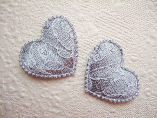 Prachtige hartjes van grijs satijn met fijn wit kant.