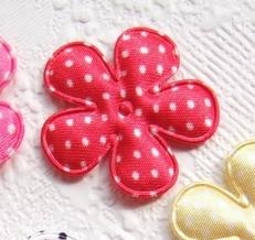 Mooie gevulde bloemen van satijn, rood met witte polkadots.