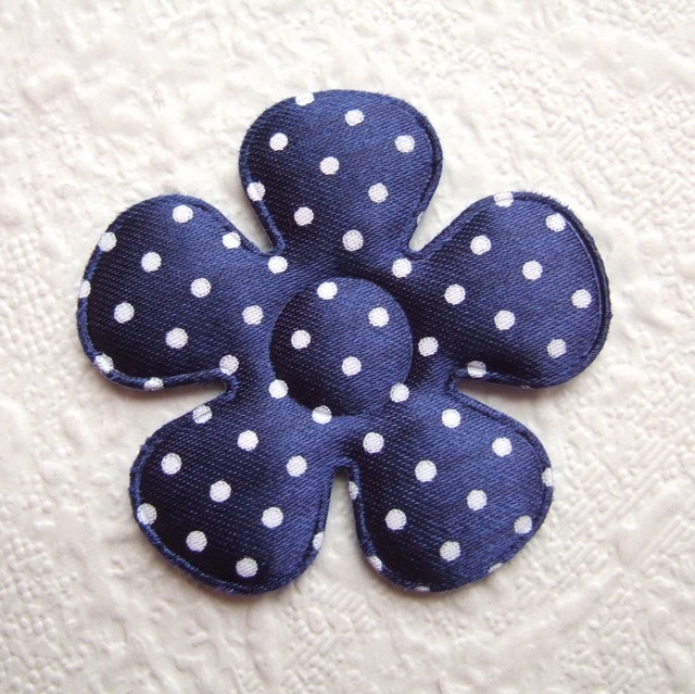 Mooie gevulde satijnen bloemen, donker blauw met witte polkadots.
