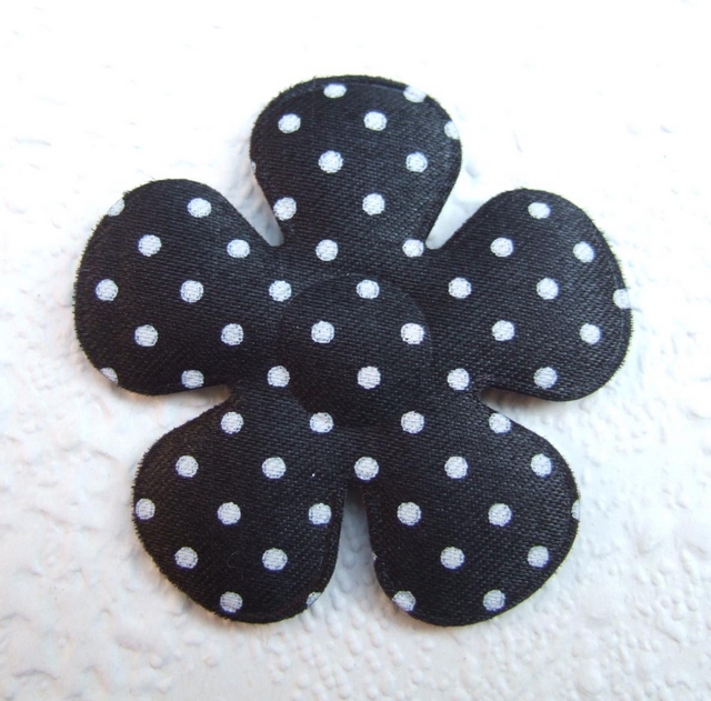 Mooie gevulde satijnen bloemen, zwart met witte polkadots.