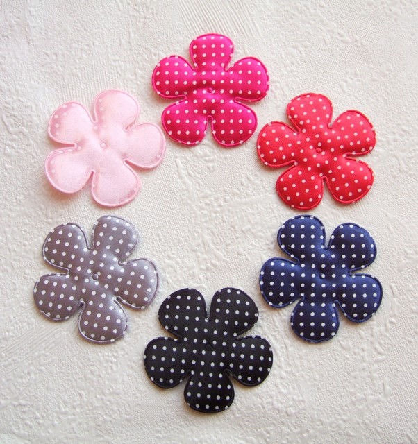 Hele grote gevulde satijnen bloem, rood met witte polkadots.