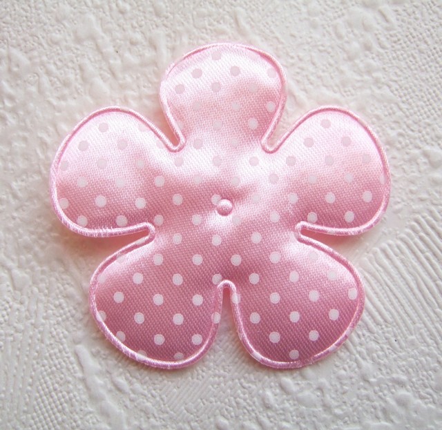 Hele grote gevulde satijnen bloem, roze met witte polkadots.