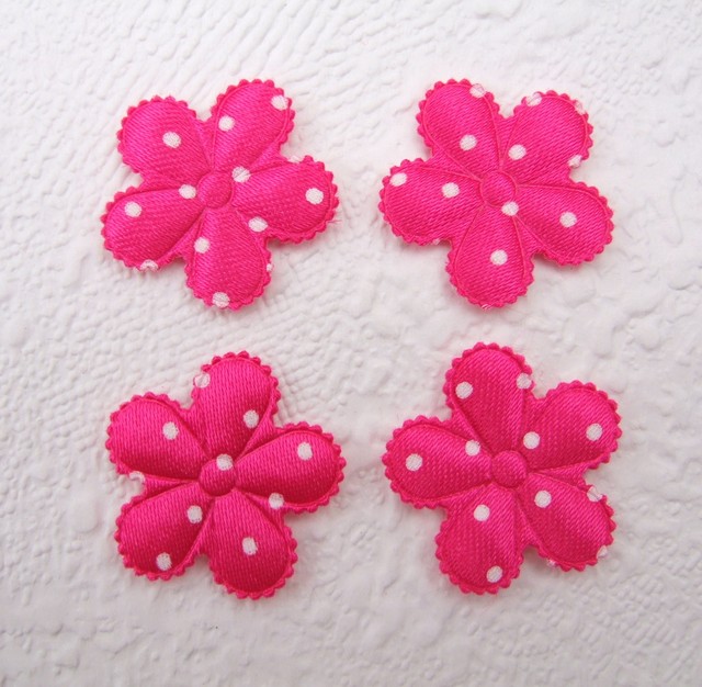 Iets gevulde fuchsia roze satijnen bloemetjes met witte stippen.
