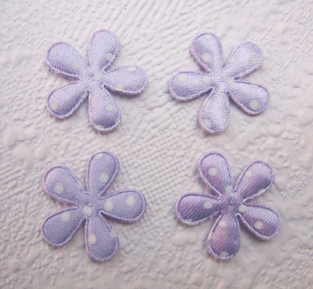 Iets gevulde licht paarse satijnen bloemetjes met witte stippen.