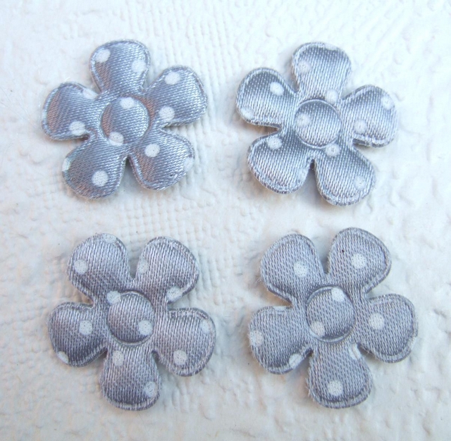 Mooie gevulde satijnen bloemen, grijs met witte polkadots.