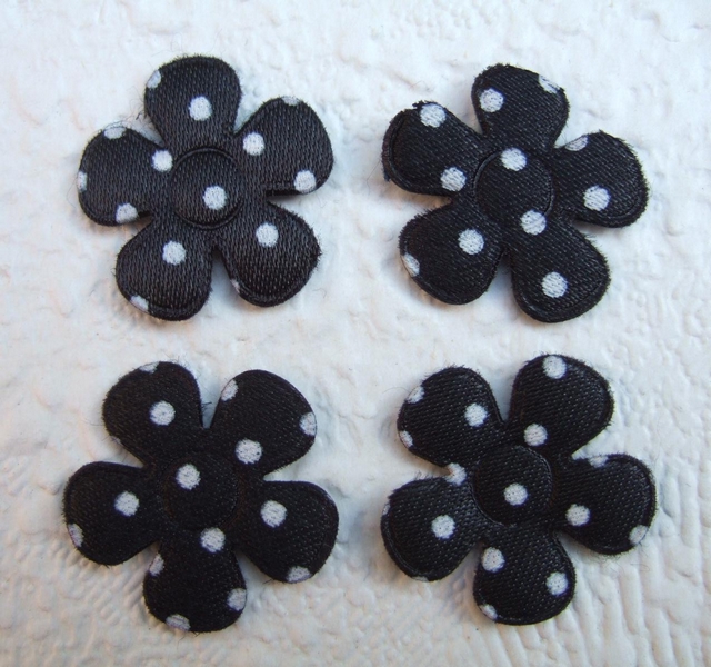 Mooie gevulde satijnen bloemen, zwart met witte polkadots.