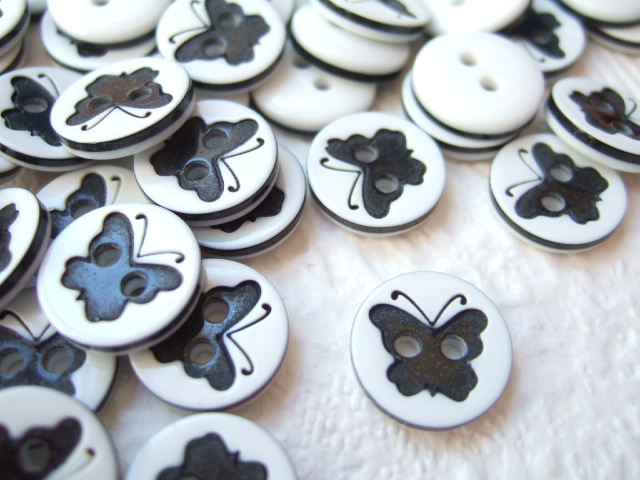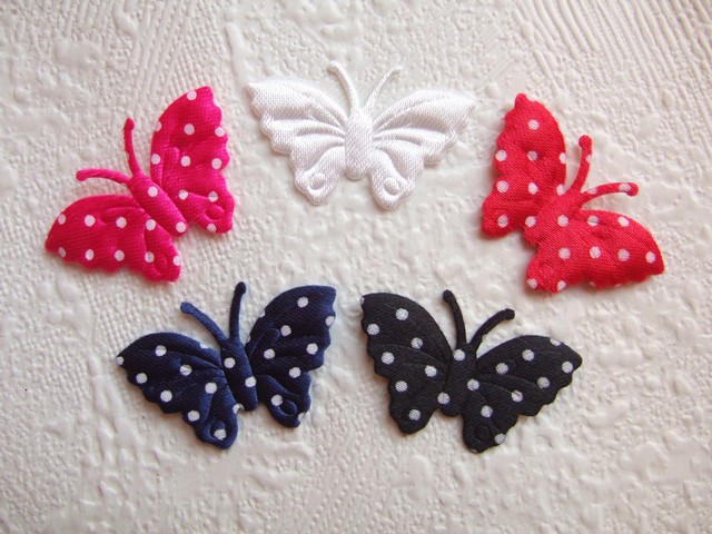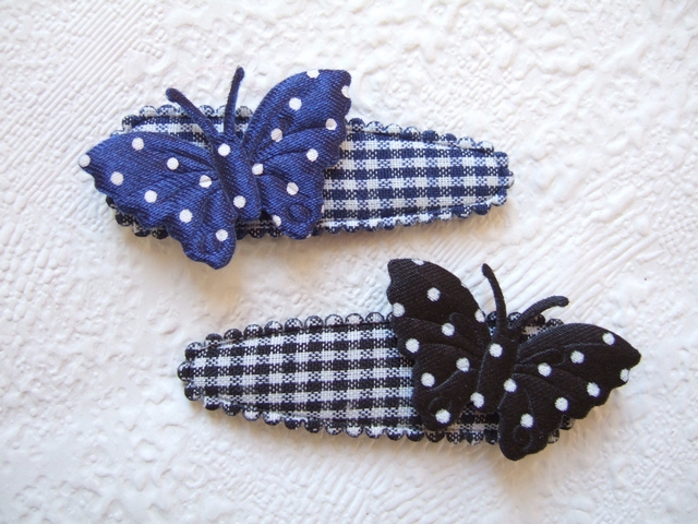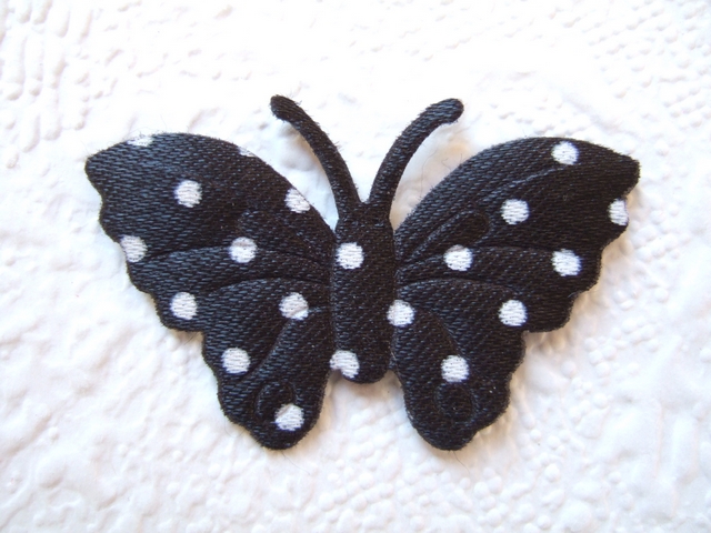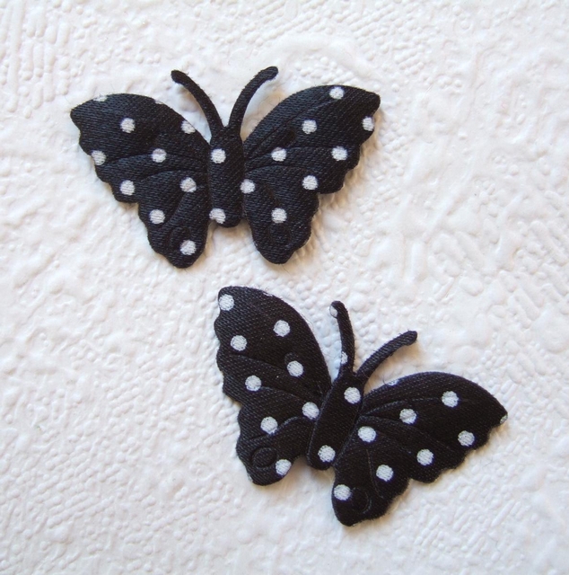 Mooie zwarte satijnen vlindertjes met witte stippen.