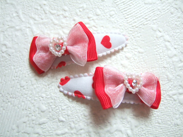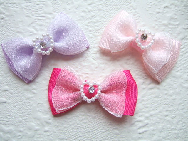 Schattige paarse strikjes met een “parelmoer” hartje met bling erop.