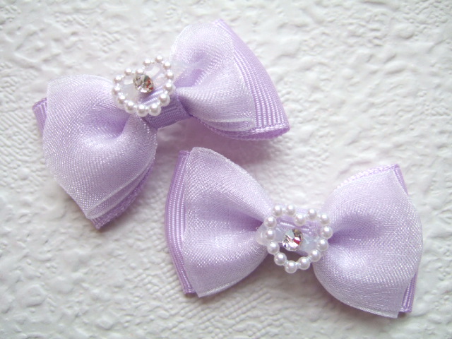 Schattige lila strikjes met een “parelmoer” hartje met bling erop.