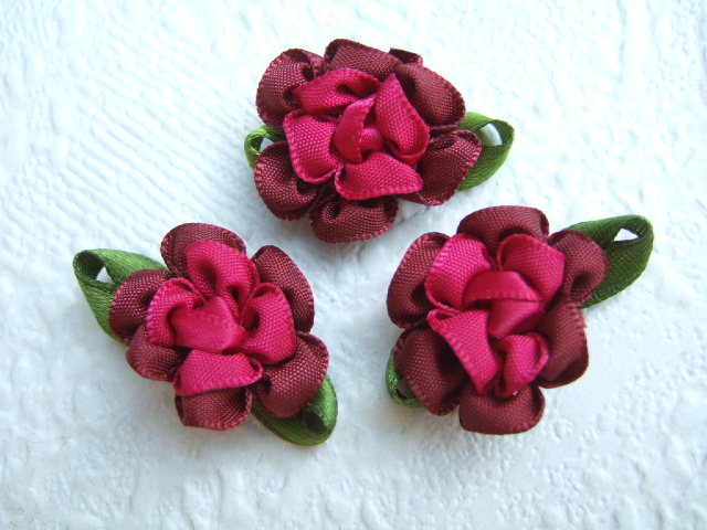 Prachtige bloemen van twee tinten bordeaux – donker fuchsia roze lint.
