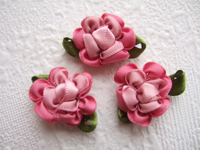 Prachtige bloemen van twee tinten oud roze lint.
