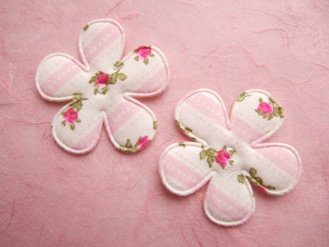 Schattige crème bloemen met roze streepjes en fijne fuchsia bloemetjes.