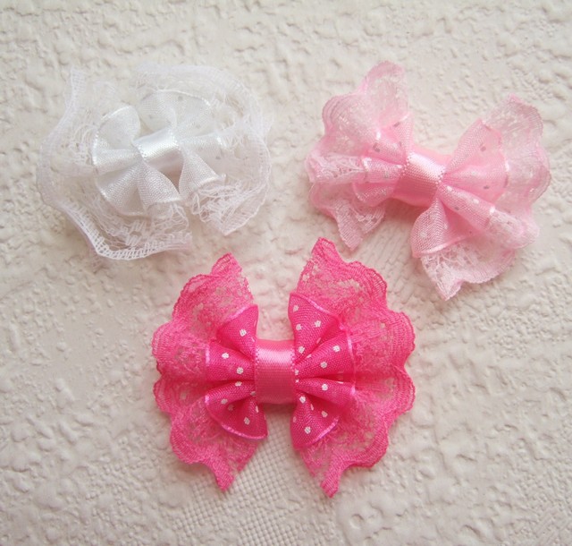 Schattige grote strikken van organza polkadot band, afgewerkt met een fijn kantje.