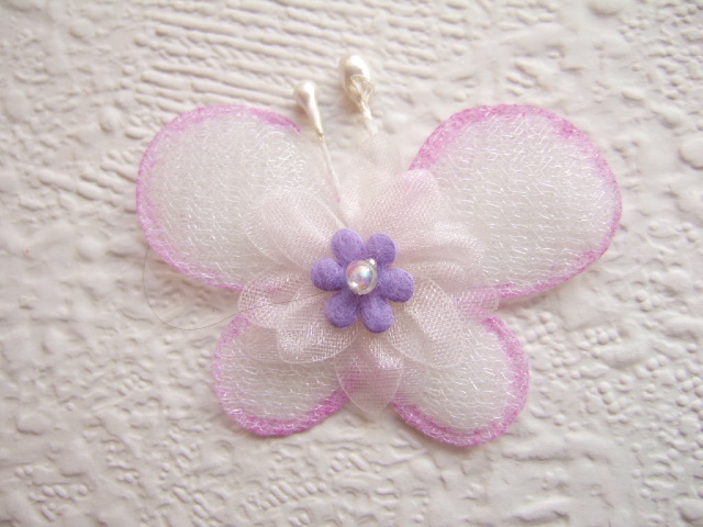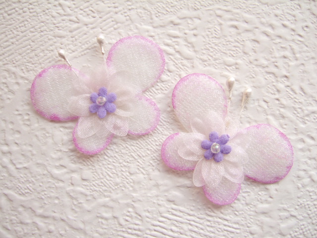 Schattige organza vlinders met een bloemetje, wit met licht paars.