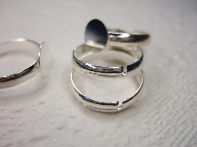 Zilver kleurige basis ringen met een lijmvlak in een kinder maatje.