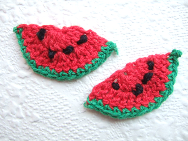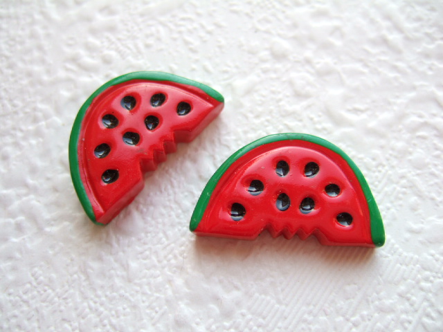 Grote watermeloenen flatbacks, rood met groen en zwarte pitjes.