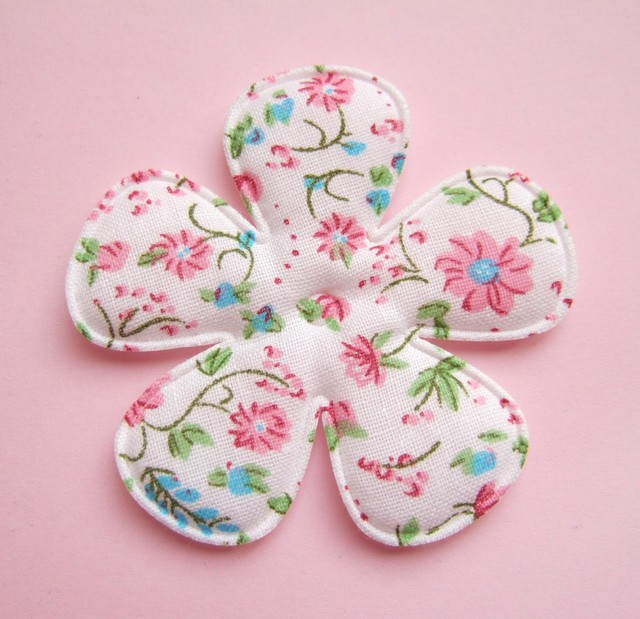 Witte gebloemde voorjaars bloem ~ 6,5 cm ~ Roze / blauw