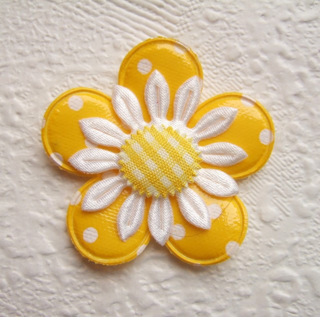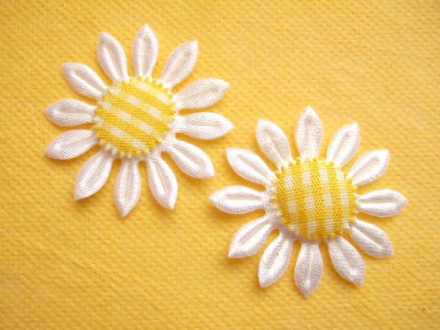 Zomerse margrieten van witte satijn met een geel geruit hartje.