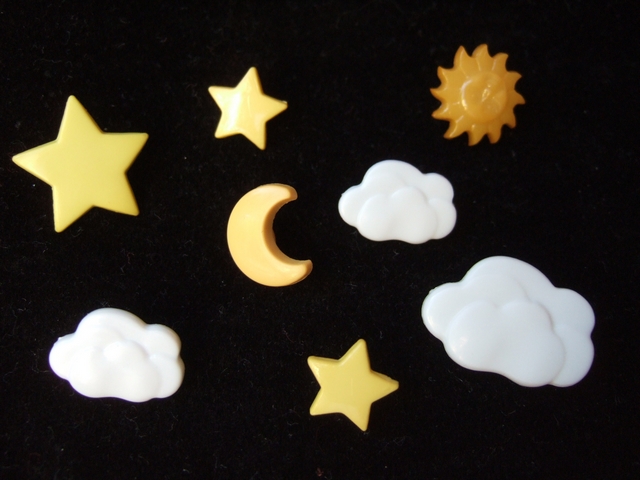 Mooie gele knopen van een zonnetje met gezicht.
