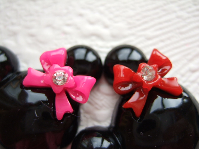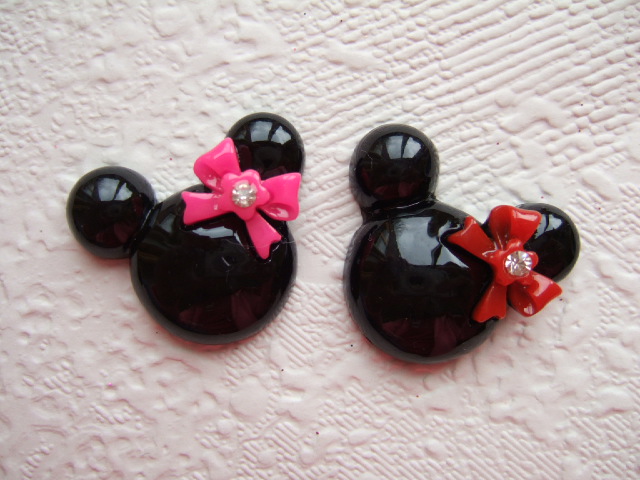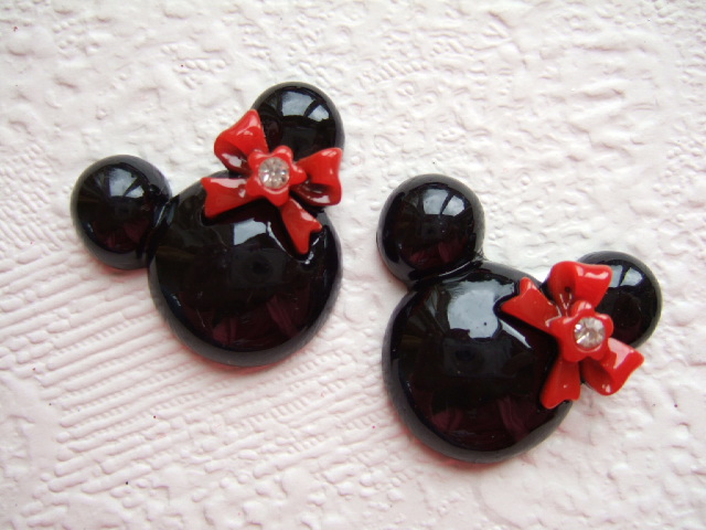 Leuke zwarte Minnie Mouse flatbacks met een rood strikje met bling.